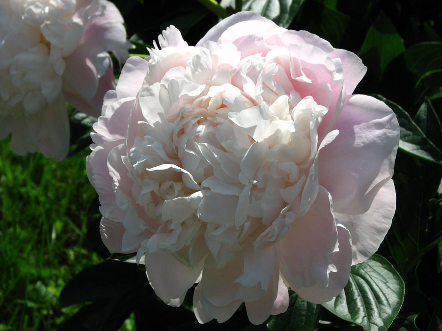 Les fleurs de cette pivoine herbacée possèdent la douceur des roses. Elles s'ouvrent en grands pompons d'abord rose pâle, puis deviennent blanches. Cette variété robuste et florifère, au parfum intense, est essentielle au jardin et dans les bouquets.