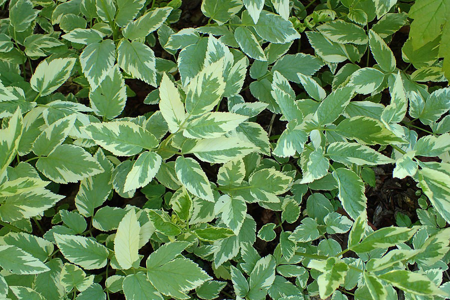 Vigoureux et presque envahissant, cet excellent couvre-sol présente un feuillage vert clair, grisâtre, panaché de crème, créant un bel effet lumineux sous les arbres. Sa floraison en ombelles, blanc crème, apparaît au début de l'été.