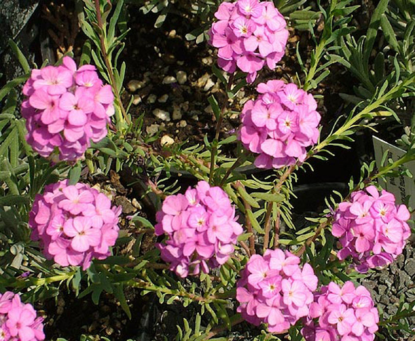Plante vivace à feuillage gris bleuté, de courte durée de vie. Inflorescence en corymbes suivie de grappes rose foncé. Très florifère, plante alpine.