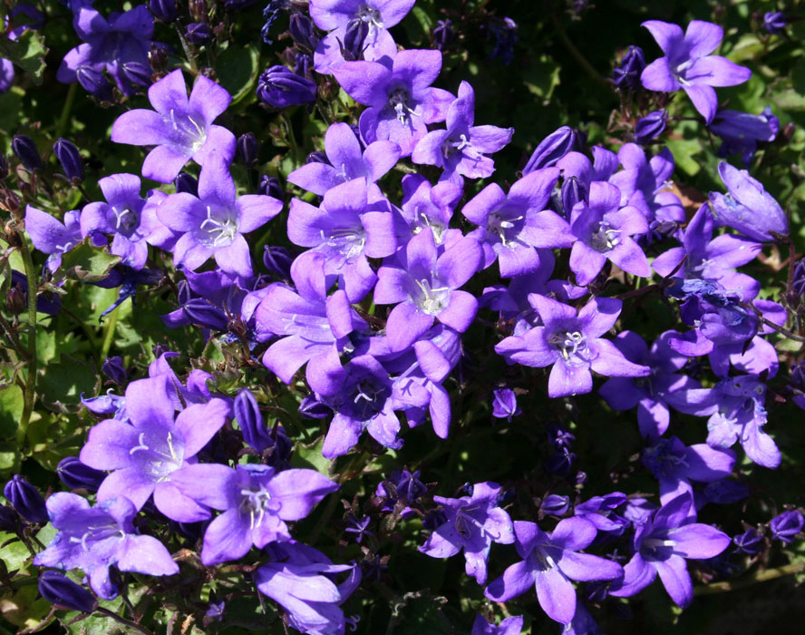 La Campanula poscharskyana, ou campanule des murs, est une plante vivace à fleurs bleues ou violettes, rampante et tapissante, souvent utilisée pour couvrir le sol ou les murs.