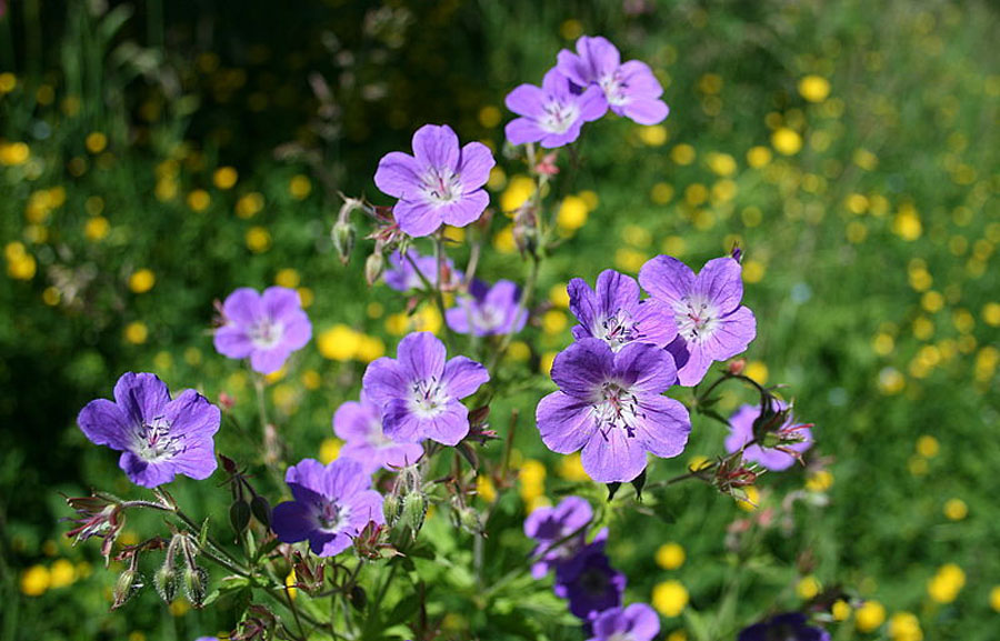 Geranium précoce avec une floraison impressionnante : nombreuses petites fleurs de 2 cm, bleu violet mauve avec un centre blanc. Idéal pour un massif mi-ombragé où il forme de belles touffes hautes.