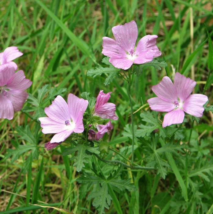 Plantes à fleurs peu exigeantes, tolérant les sols secs mais de courte durée de vie. Touffes ramifiées et lâches. Feuilles vertes à lobes étroits avec une odeur musquée. Au début de l'été, succession de bouquets de grandes fleurs rose pâle en forme de coupe échancrée.