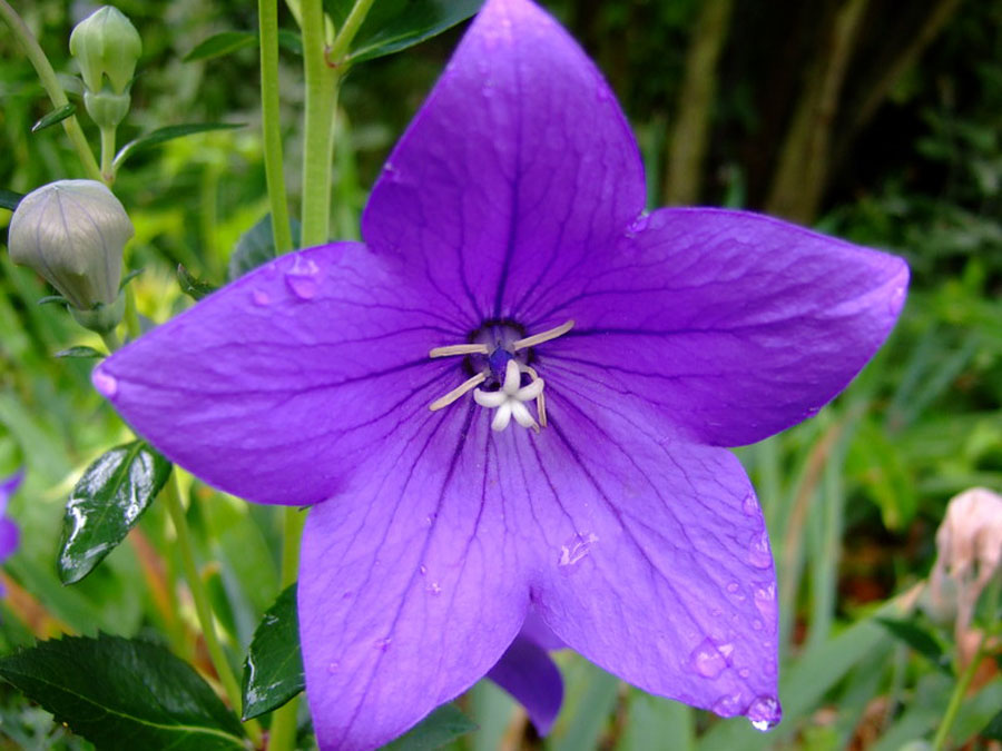 Coupes de fleurs aux pétales fusionnés d'un bleu intense au début de l'été ; adaptés aux sols frais et sablonneux, en plein soleil.