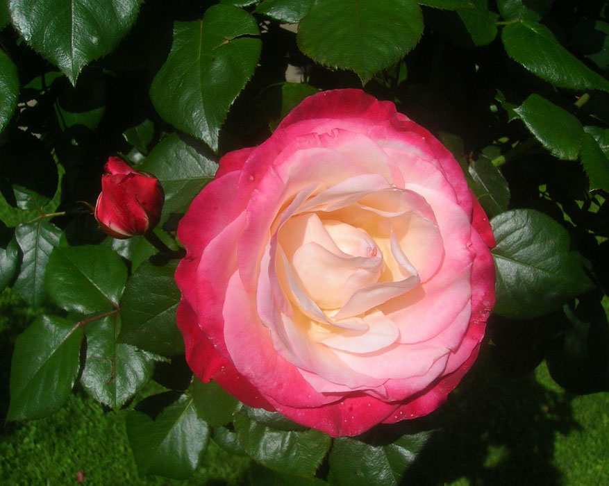 Une rose splendide pour les arrangements floraux ou le jardin, caractérisée par ses fleurs en forme de turbine, son parfum envoûtant et ses teintes subtiles. Les pétales présentent un cœur blanc crème avec des bords rouge cerise, créant une harmonie élégante. Probablement l'une des plus belles variétés remontantes, elle fleurit de juin jusqu'aux premières gelées.