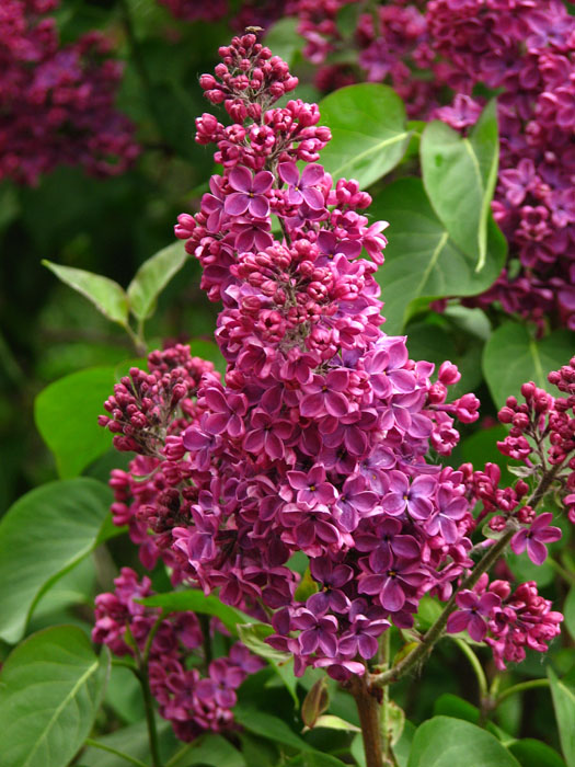 Syringa vulgaris Ludwig Späth est un lilas commun avec des fleurs pourpres foncées, parfumées, qui fleurit au printemps.