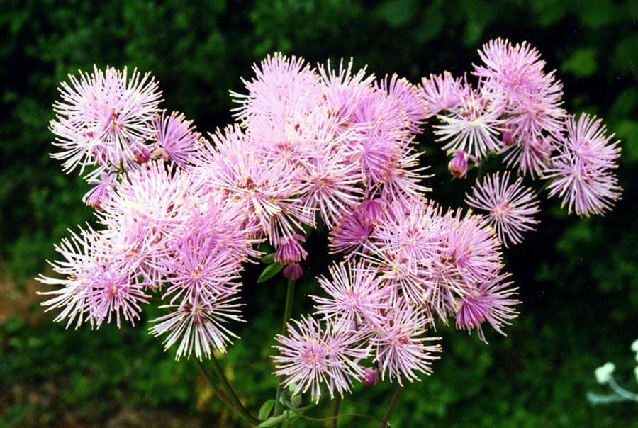Les fleurs, avec leurs innombrables étamines, forment au printemps des plumets rose pourpre élégants, perchés sur de hautes tiges robustes, accompagnées d'un beau feuillage vert bleuté.