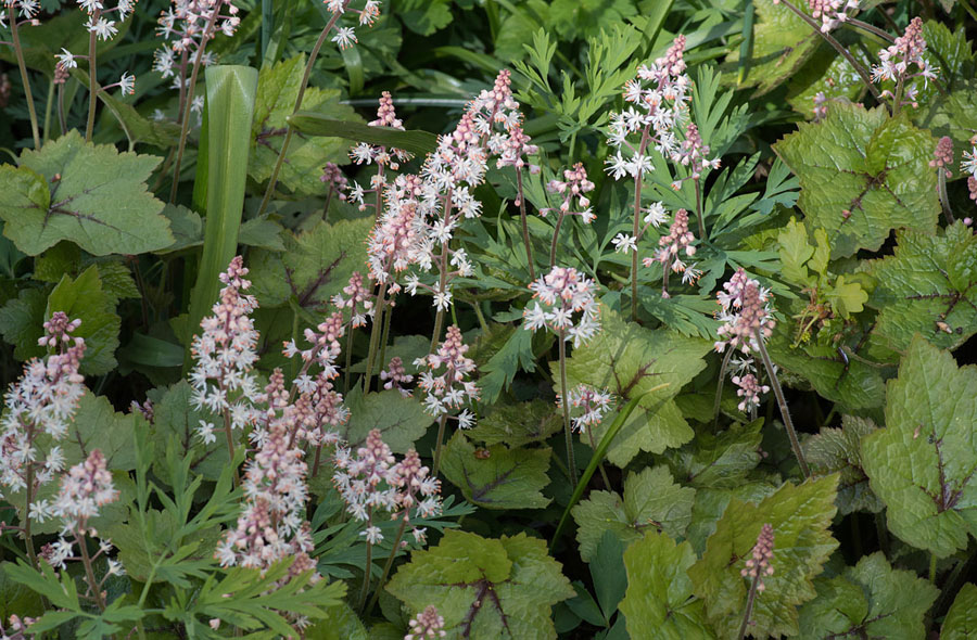Croissance lente et vivace. Feuilles lobées, vert pâle avec une teinte brune. Épis de fleurs blanches avec des étamines brunes.