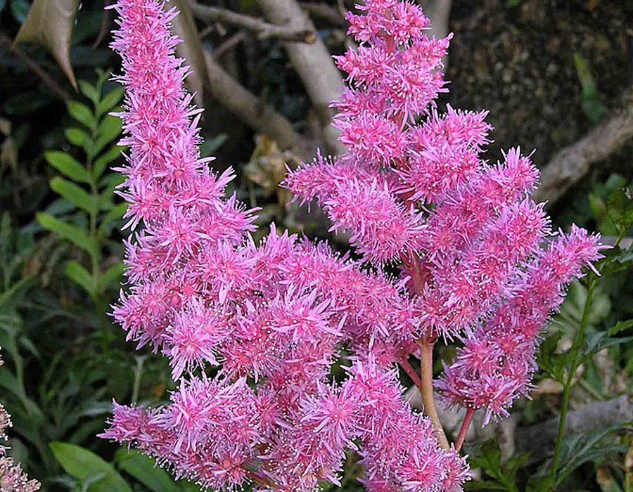 Cette astilbe présente des fleurs rose pourpre en forme de plume, denses et parfumées. Elle fleurit du milieu à la fin de l'été, et son feuillage vert foncé brillant est attrayant même seul. Elle préfère les sols humides, mais supporte un peu de sécheresse.