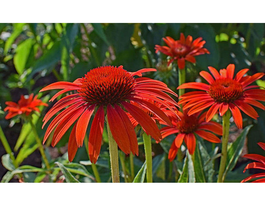 La fleur présente une teinte rouge avec un magnifique cône rouge-brun en son centre. Elle fleurit de juin à septembre et est résistante au froid.