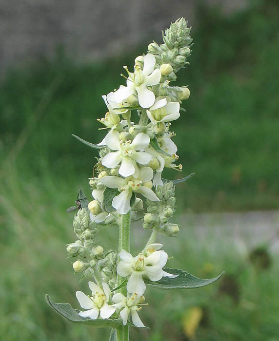 Verbascum Flush of White est une plante vivace à fleurs blanches, souvent utilisée pour ses hautes tiges florales et son feuillage gris-vert. Elle est appréciée pour sa floraison estivale et sa capacité à attirer les pollinisateurs.