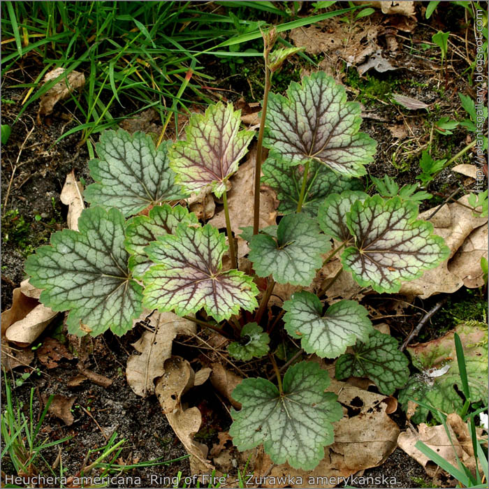 Heuchère unique avec des feuilles aux reflets bleutés et veinées de noir.