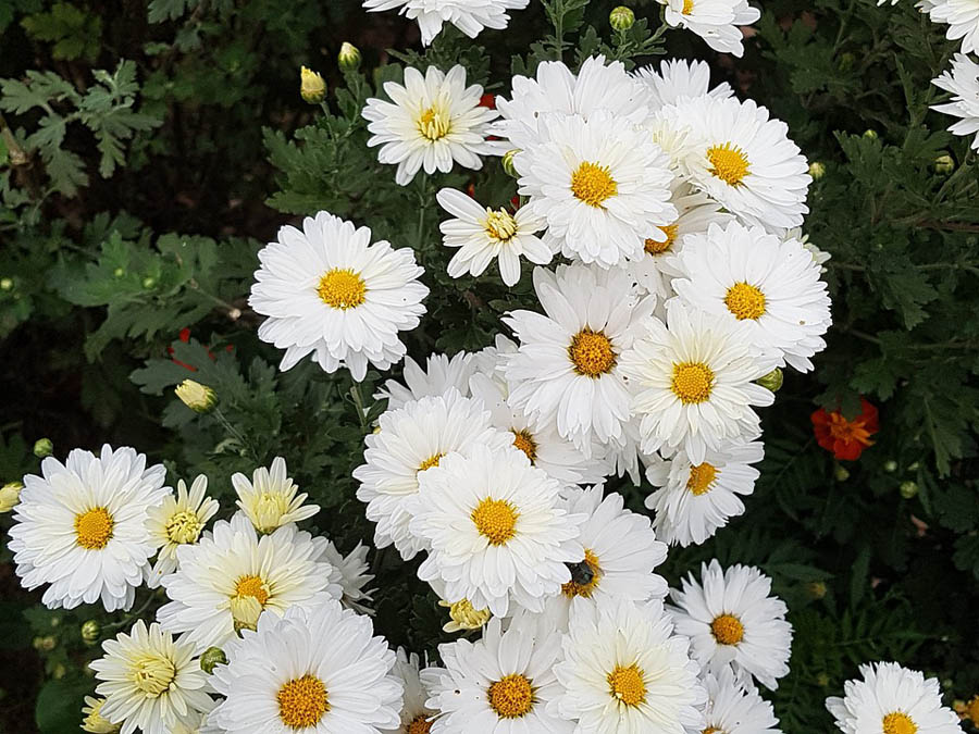 Leucanthemum Ooh La La Spider est une marguerite vivace avec des fleurs blanches aux pétales fins et allongés, ressemblant à des pattes d'araignée, et un cœur jaune. Elle est appréciée pour sa floraison abondante et sa résistance.